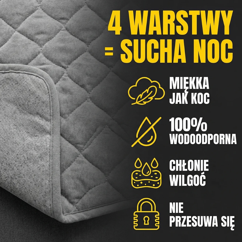 Zapomnij o szeleszczących "ceratach". Ten podkład jest całkowicie bezgłośny i niewidoczny pod prześcieradłem. To Twoja prywatna sprawa.